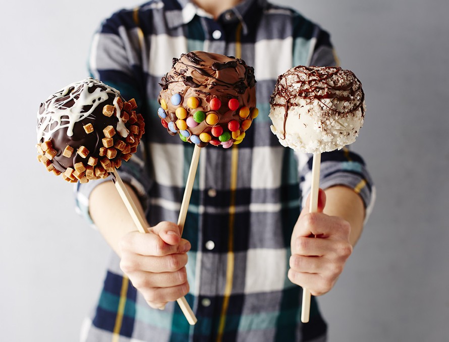 - Kuorruta omena dippaamalla sitä suklaaseen, ja lisäämällä haluamasi koristeet joko pyörittelemällä omenaa koristeissa tai painelemalla ne omenan päälle. Toimi ripeästi, sillä kuorrute jähmettyy nopeasti.