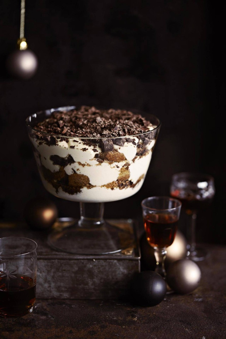 - Tee muutama kerros samalla tavalla laittamalla mascarponevaahtoa, piparia, suklaata ja keksejä päällekkäin. Lusikoi mascarponevaahtoa päällimmäiseksi. Peitä kelmulla ja nosta viileään pariksi tunniksi.