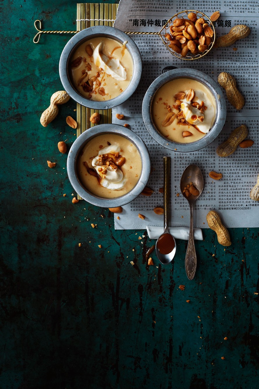 - Jaa mousse annoskuppeihin, koristele kermavaahdolla ja suolapähkinöillä. Valuta halutessasi päälle kinuskikastiketta.