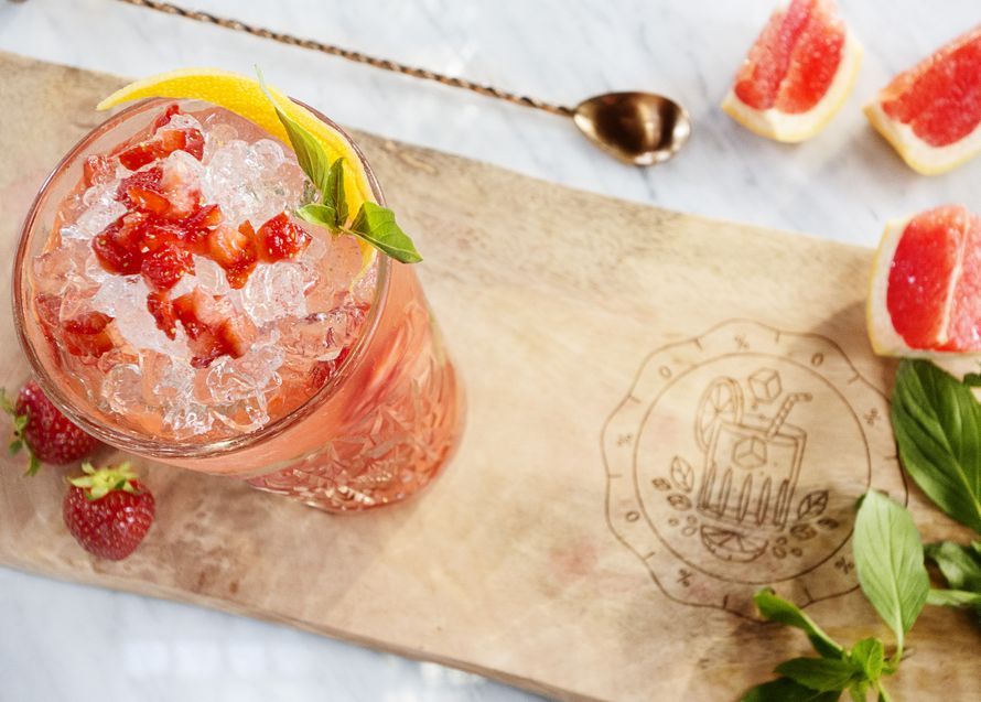 - Koristele greipinkuorella, mansikalla ja sitrusbasilikalla.