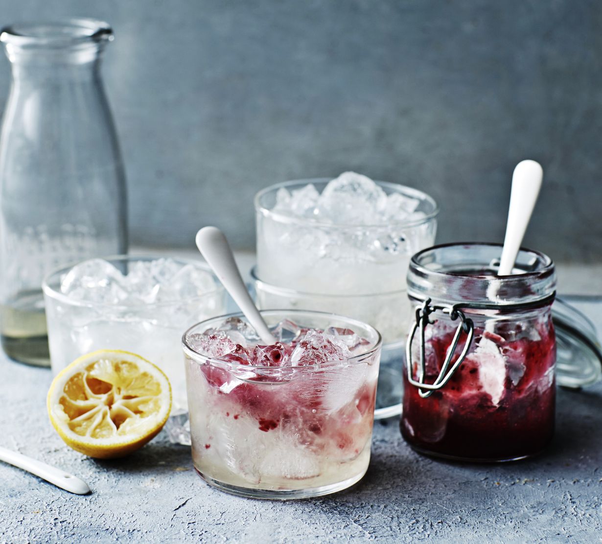 - Laita gin, sitruunamehu ja siirappi ravistimeen tai kannuun. Sekoita hyvin. Kaada laseihin. Viimeistele drinkit lusikallisella hilloa. Sekoita hyvin.
