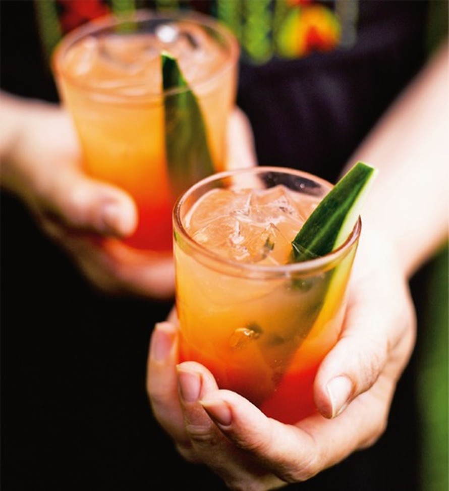 - Leikkaa kurkusta tukeva sekoitustikku juoman koristeeksi. Tarjoa drinkit heti.