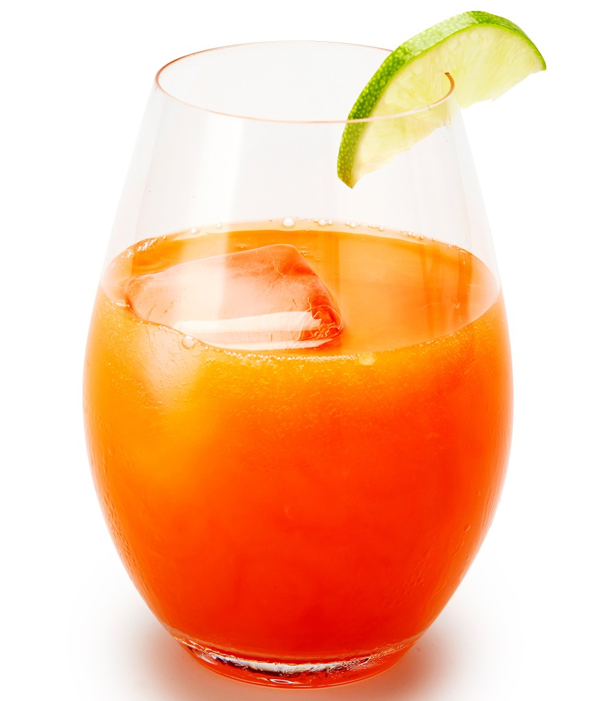 - Mittaa vodka ja mehut juomalasiin. Sekoita ja lisää jäät.
