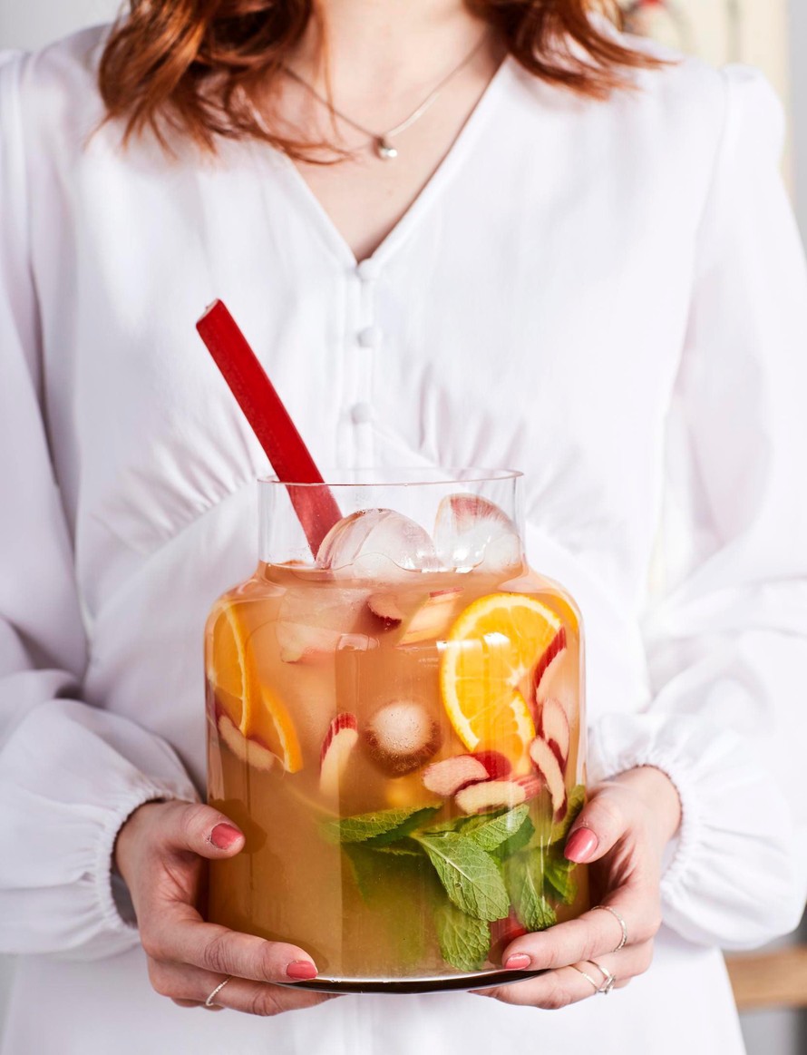 Kaikille sopivassa sangriassa voi käyttää kombuchaa tai alkoholitonta viiniä.