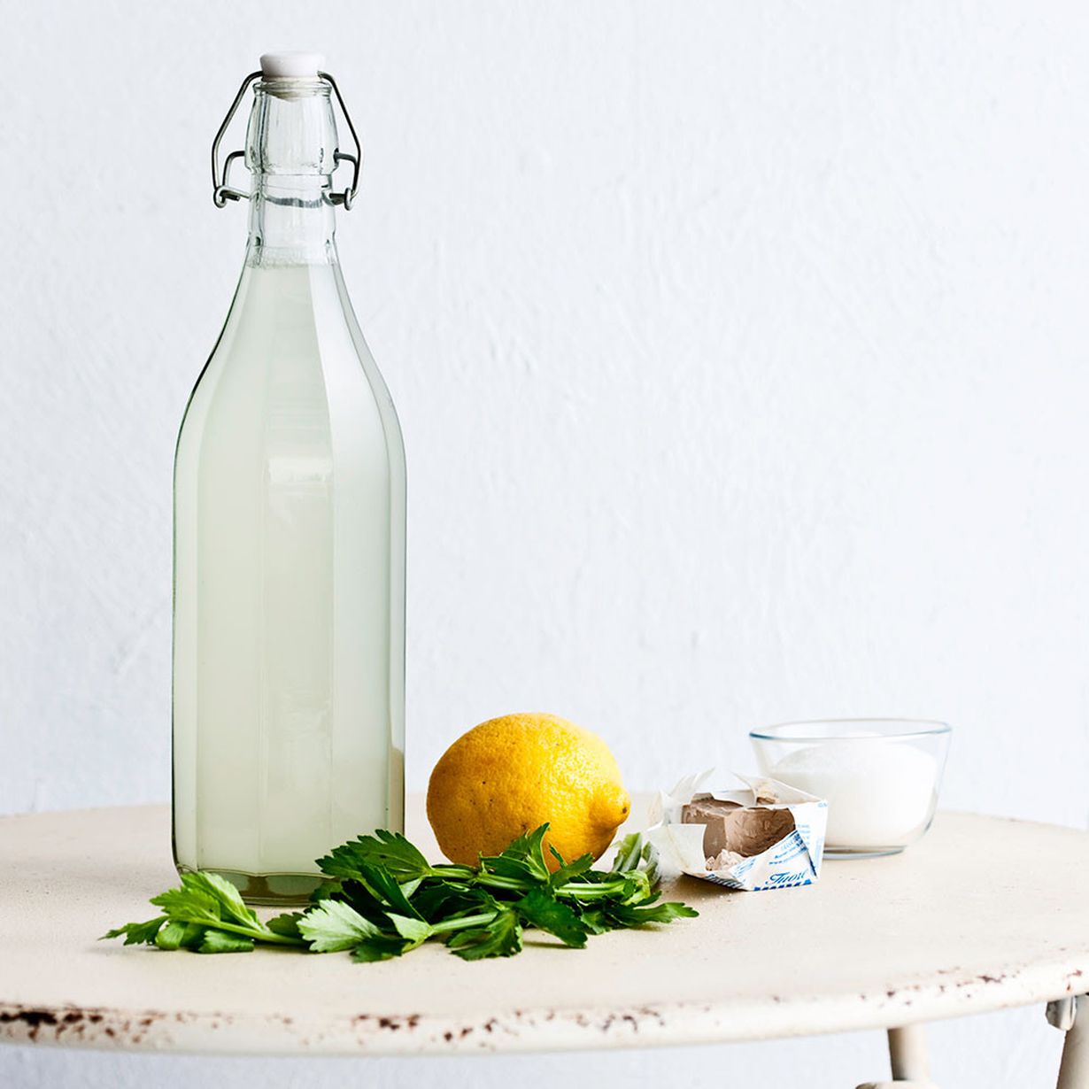 - Huuhdo sellerinlehdet hyvin ja pane ne tilavaan astiaan. Kiehauta vesi ja kaada se lehtien päälle. Sekoita sokeri joukkoon. Kuori ja viipaloi sitruuna ja sekoita simaan. Anna siman jäähtyä haaleaksi.