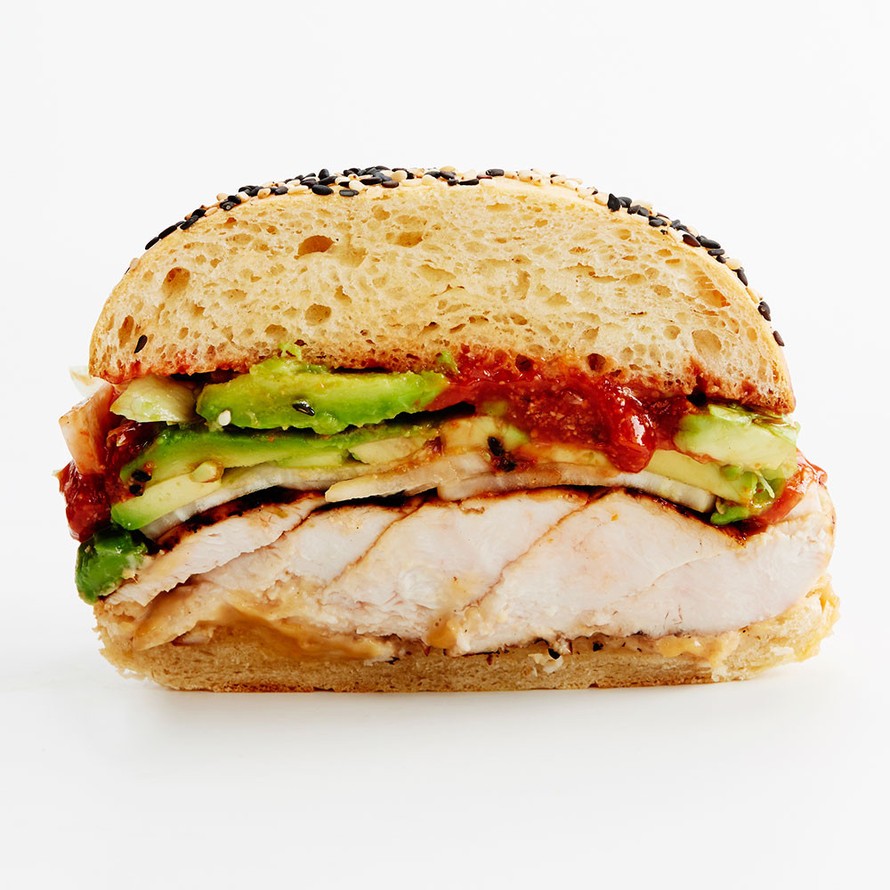 - Viipaloi rintafileet noin 1 cm levyisiksi suikaleiksi. Sivele sämpylän pohjalle misomajoneesia. Laita sen päälle broileria, retikkaa, avokadoa ja salaattia. Sipaise kanteen shichimi-ketsuppia. Vinkki: Shichimi togarashia eli japanilaista seitsenmaustetta myydään etnisissä ruokakaupoissa, mutta voit valmistaa sitä itsekin. Ohjeen löydät täältä.