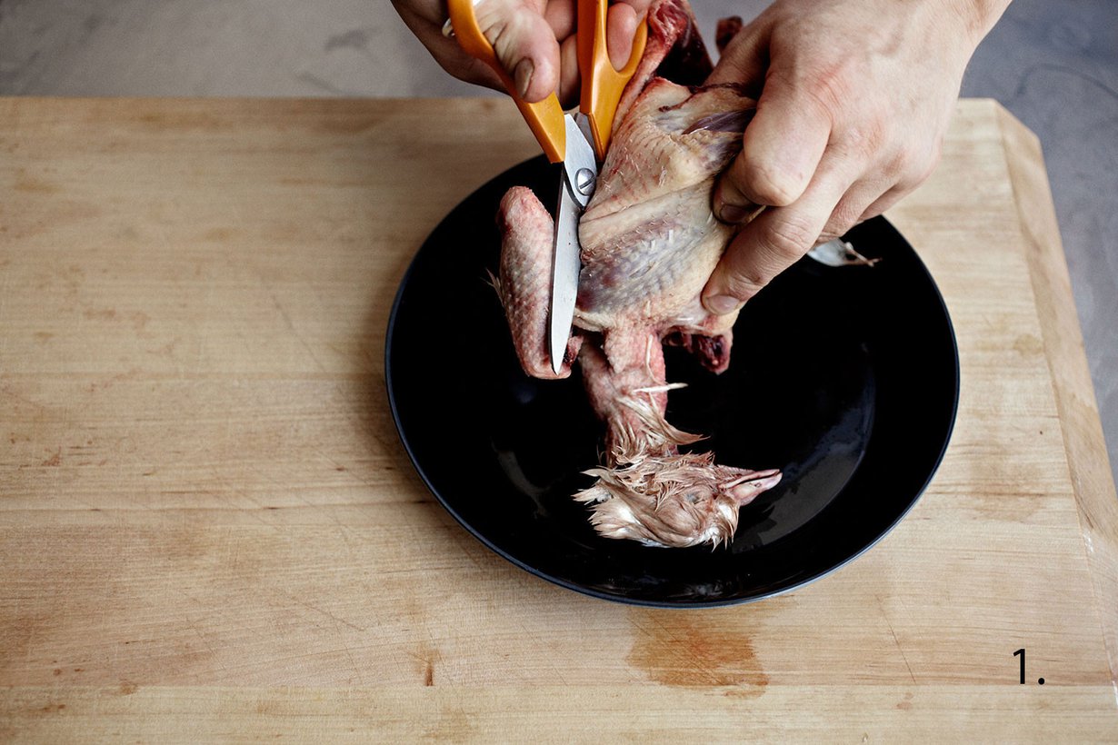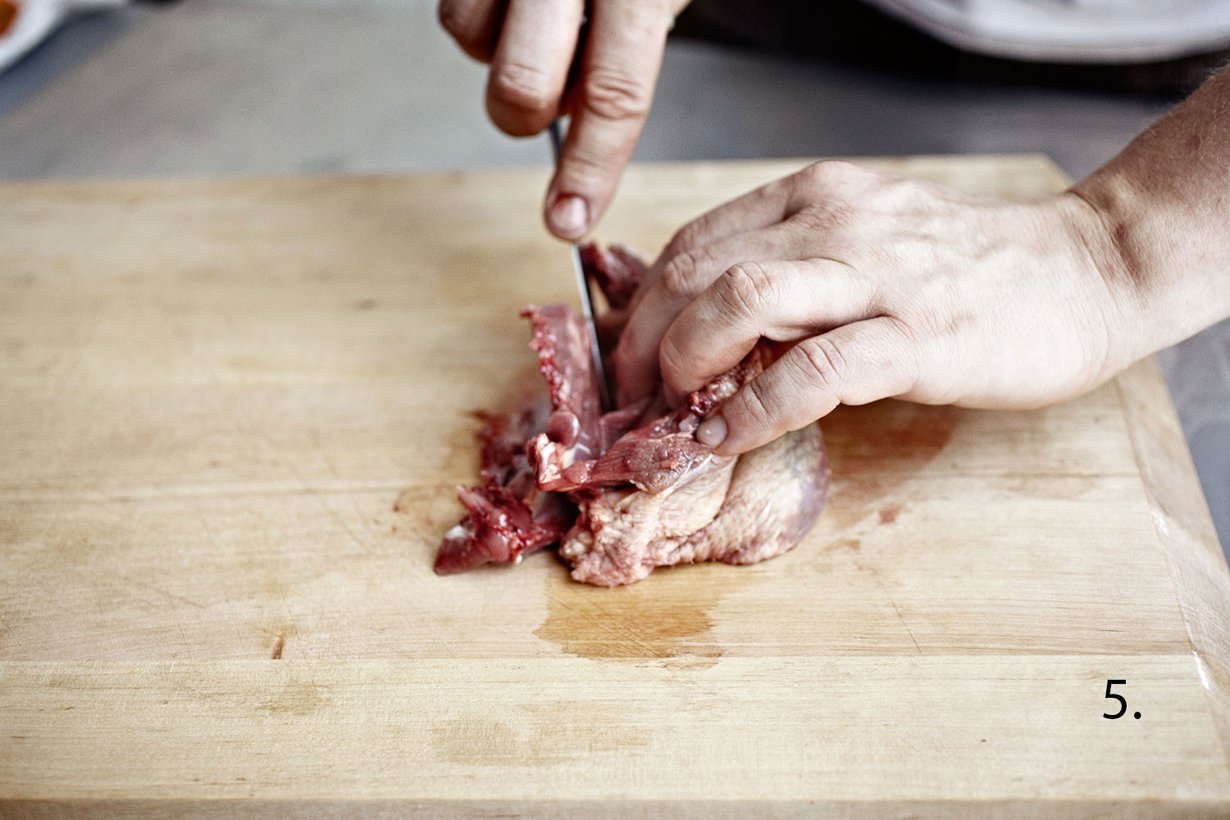 Komea kyyhkyballottine on todellinen kokin taidonnäyte, sillä se vaatii huolellista veitsityöskentelyä. Kun seuraat työvaiheita, on lopputulos vaivan arvoinen. Ei aloittelijoille!