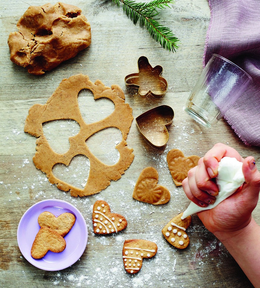 - Ota taikina huoneenlämpöön tuntia ennen leipomista. Kauli taikina jauhotetulla alustalla kahden millin paksuiseksi levyksi ja painele muotilla kuviot. Nosta piparit pellille.