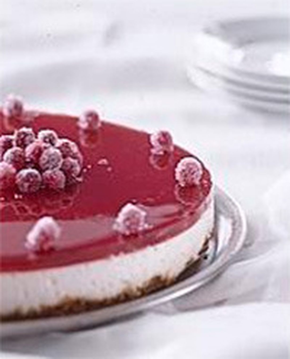 - Kiehauta glögi ja sulata puristellut liivatteet glögiin. Jäähdytä lähes viileäksi, ettei lämmin kiille sulata kermaisen kakun pintaa. Kaada kiille kakun päälle vuokaan ja anna hyytyä yön yli.