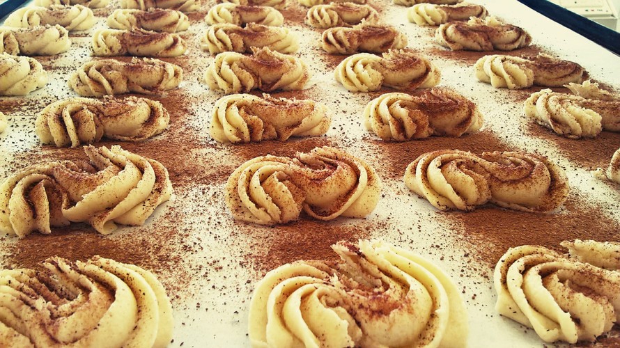 Pursota s-kirjaimen mallisia pikkuleipiä, ripottele pintaan kanelia.