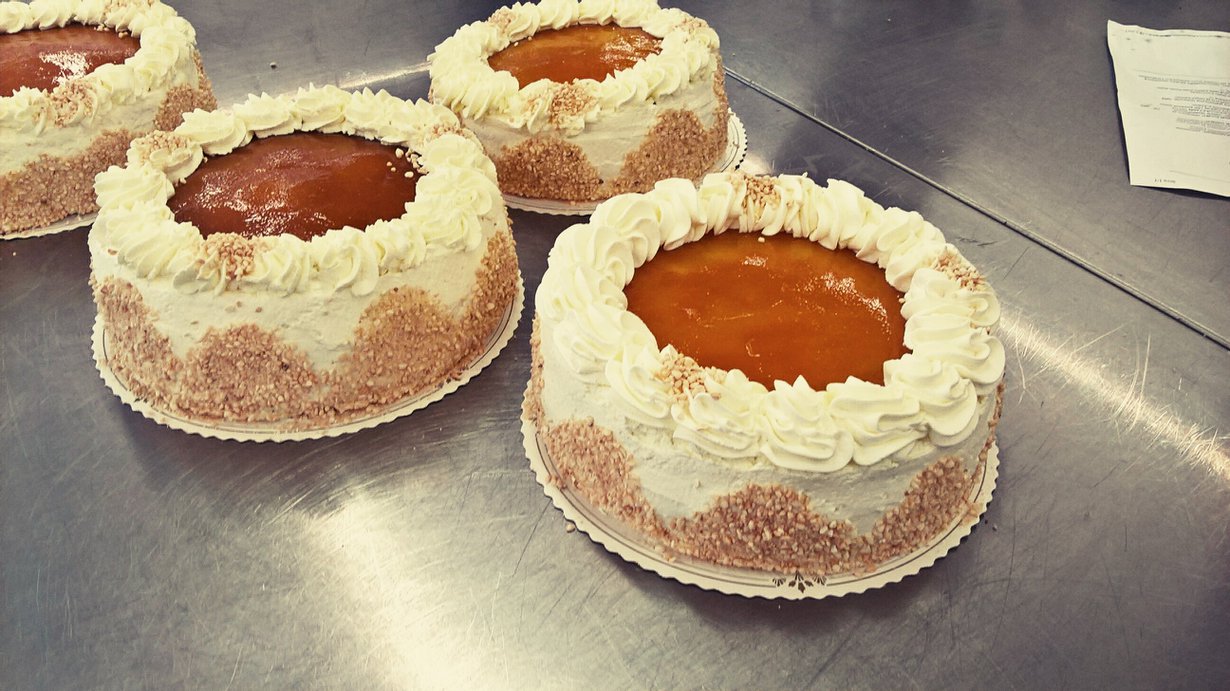 Kaada 3 munan kakkutaikina 2 litran ja 4 munan kakkutaikina 2 1/2 litran voideltuun ja korppujauhotettuun vuokaan. (Pinnoitettua vuokaa ei tarvitse korppujauhottaa.)