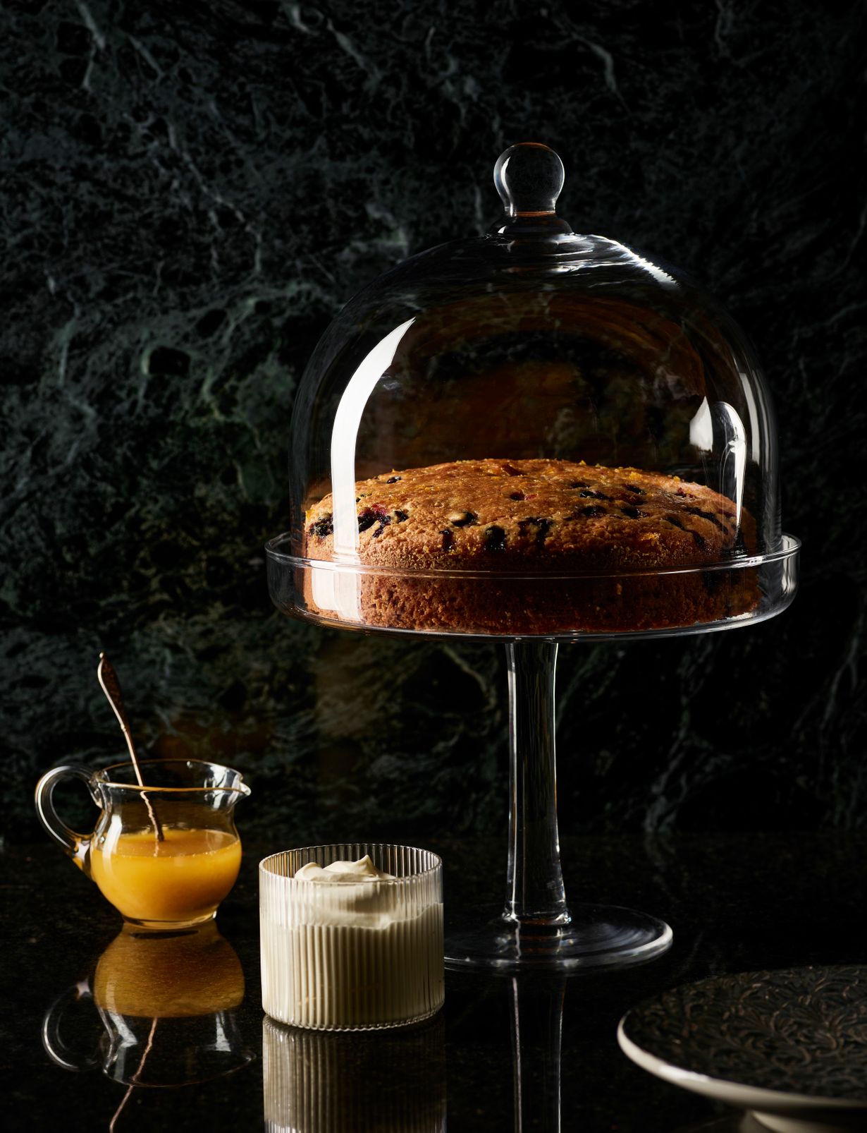 Ota kakku uunista. Pistele kuumaan kakkuun tikulla reikiä. Valuta vajaa puolet siirapista kakun pinnalle ja anna vetäytyä vuoassa 20 minuuttia. Tarjoa loppu siirappi kakun kastikkeena. Jos siirappi on ehtinyt jähmettyä liikaa, voit lisätä joukkoon tilkan vettä ja lämmittää sen varovasti uudelleen.