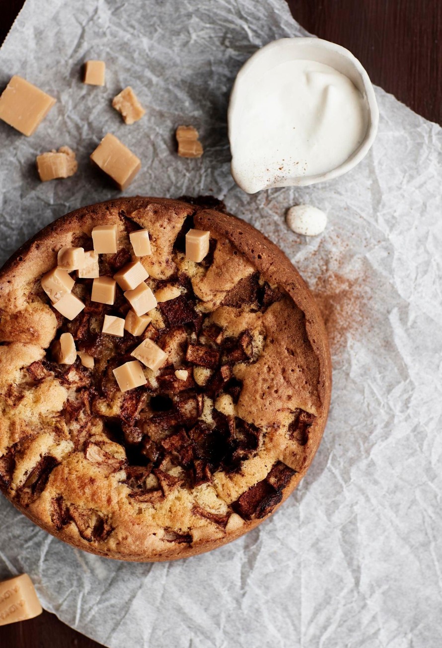 Leivo omenapuun pudokkaista ihana kuohkea ja ilmava kakku, jossa on sattumina meheviä omena- ja toffeekuutioita.