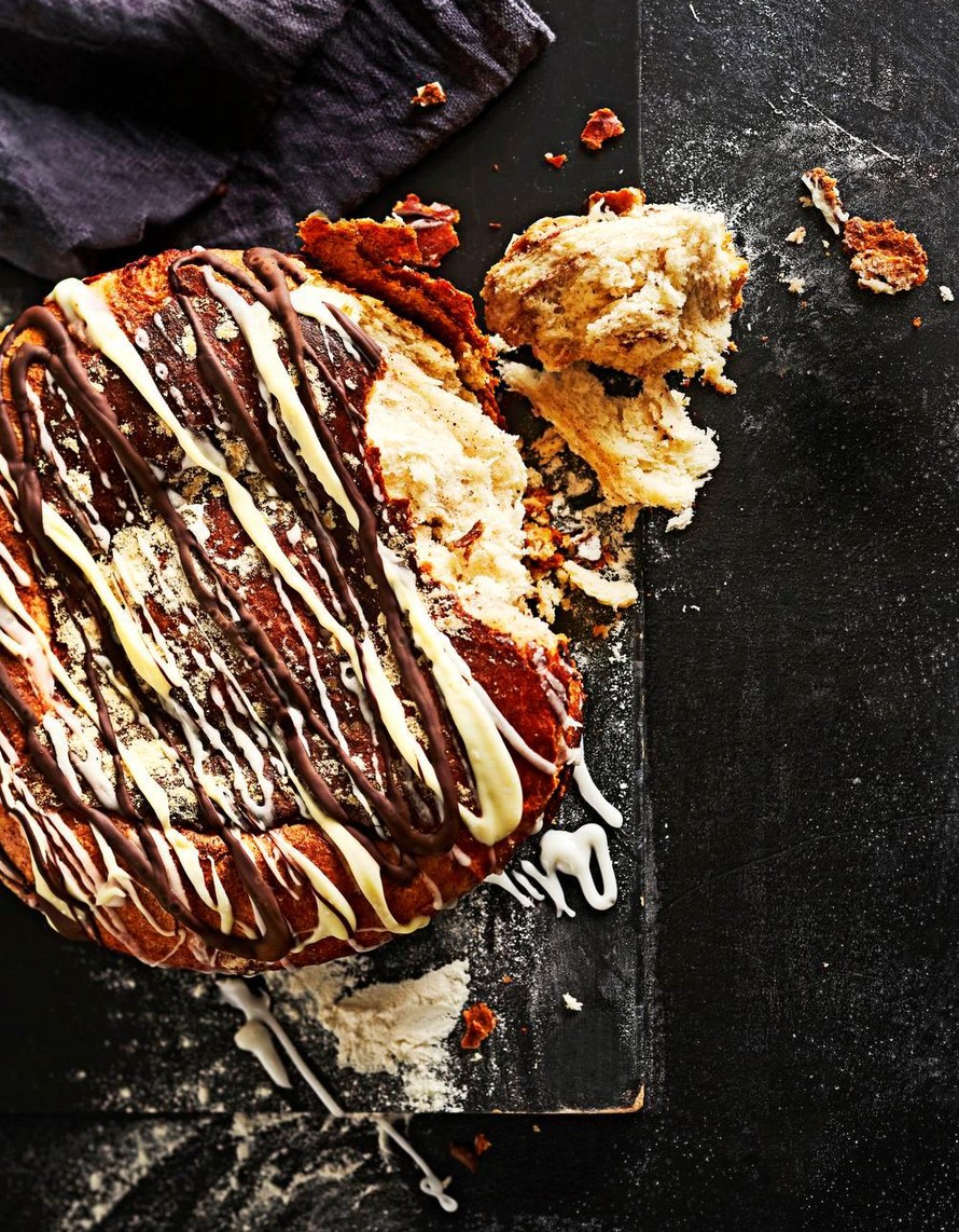 - Anna pullan jäähtyä hetki padassa ja kumoa se sitten varoen ritilälle jäähtymään. Valuta koristeeksi sokerikuorrutetta tai sulatettua suklaata.