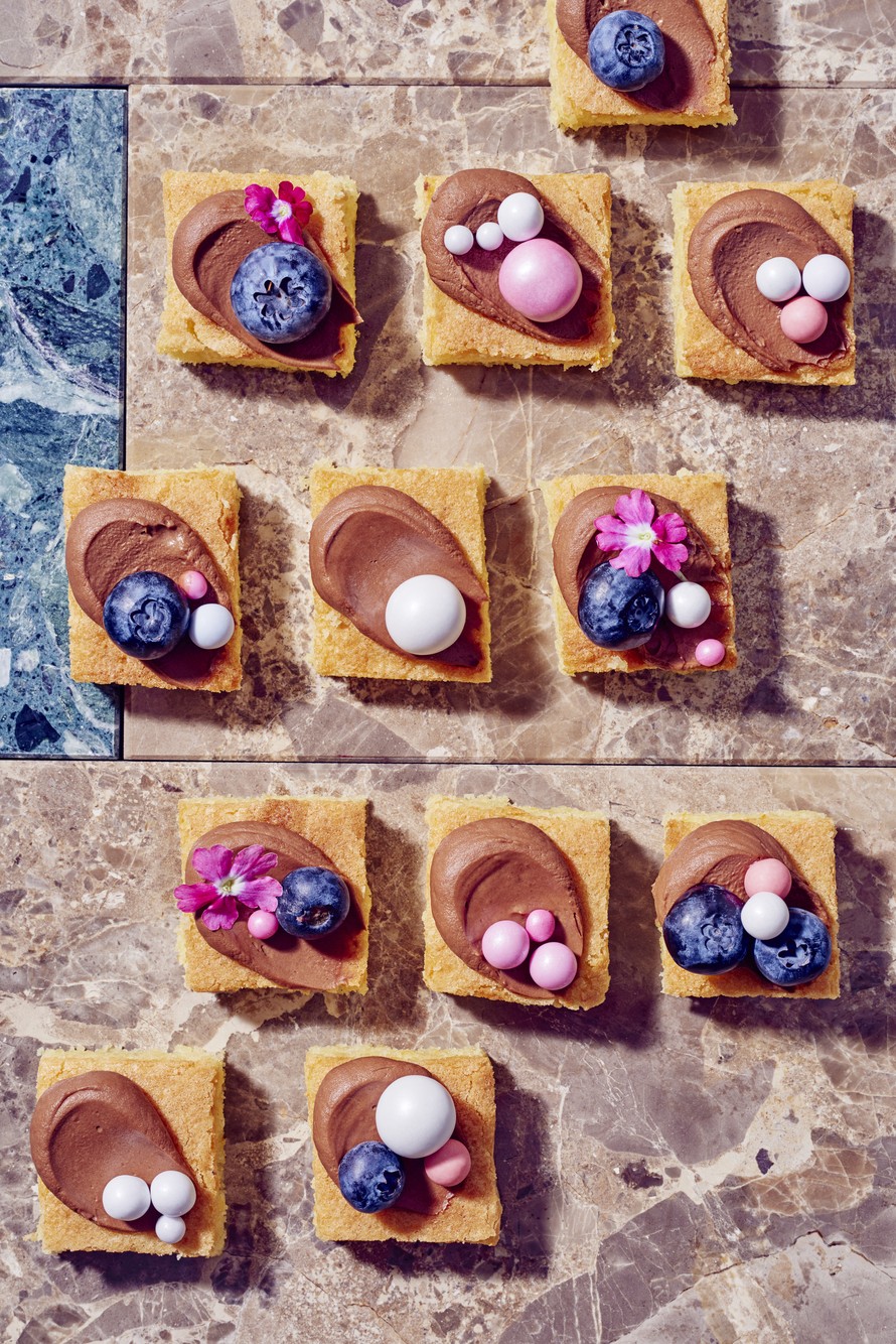- Koristele pensasmustikoilla, syötävillä kukilla ja erilaisilla strösseleillä.