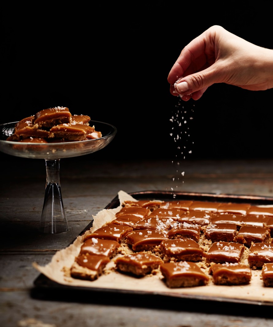 - Leikkaa levy terävällä veitsellä annospaloiksi. Ripottele paloille sormisuolahiutaleita.
