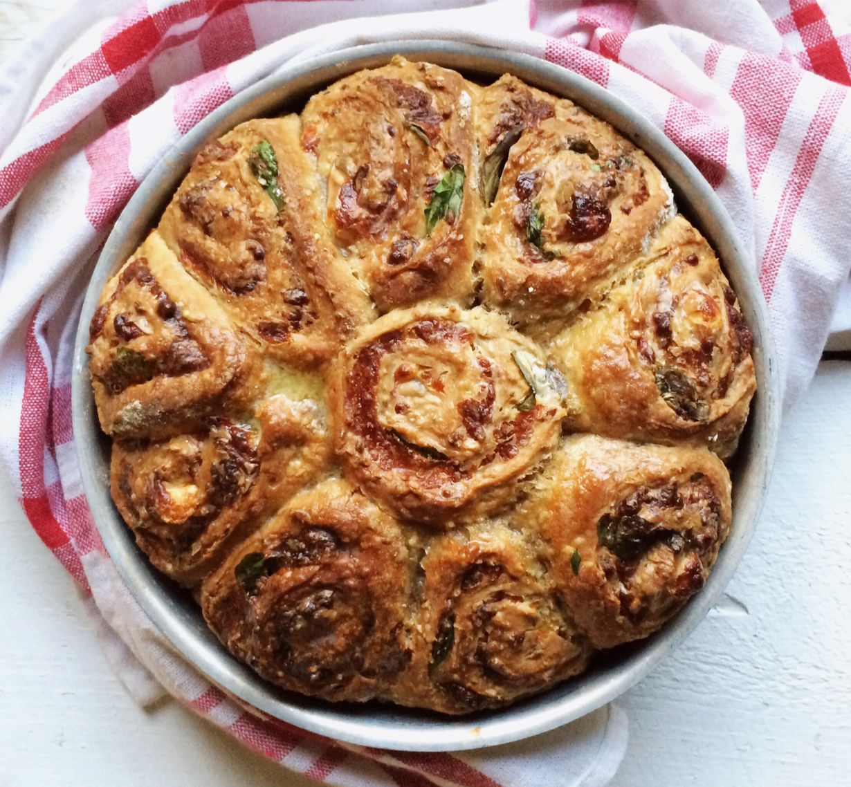 Jos suolaisia makuja rakastava joskus himoitsee pullaa, tämä resepti on oiva valinta. Lämpimän ja pehmeän leivän välistä paljastuu venyvää juustoa ja maukkaita yrttejä. Mikään kevyt herkku tämä ei ole, ennemminkin kunnon lohturuokaa. Leivän pinta näet viimeistellään voilla, ja toki jokaisen palan päälle kuuluu sipaista vielä oma nokareensa.