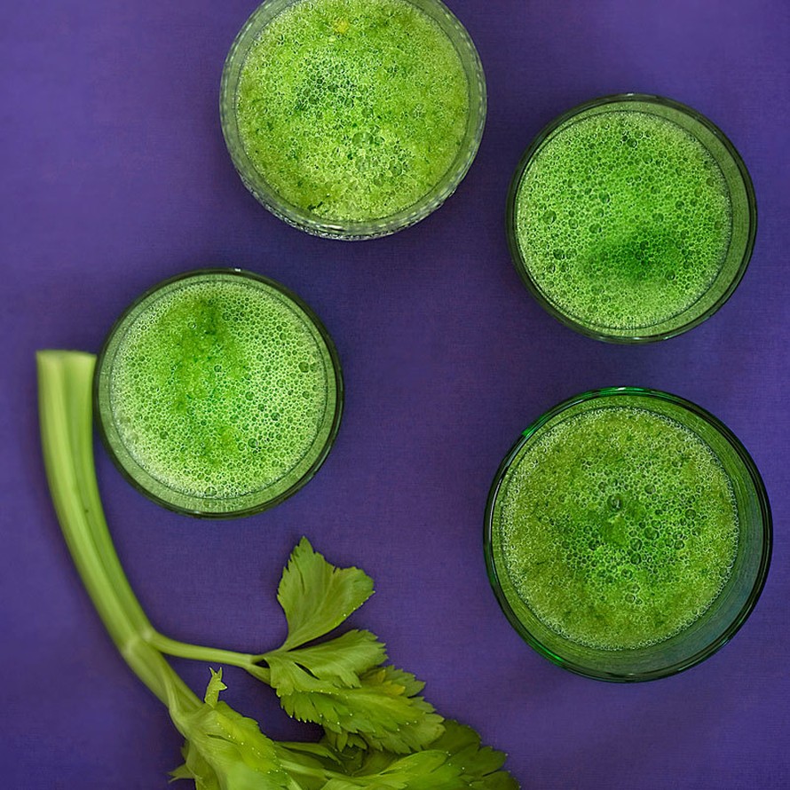 - Pese ja pilko sellerin varret, puolikas omena ja jääsalaatti. Pyöräytä kaikki ainekset tasaiseksi tehosekoittimessa.