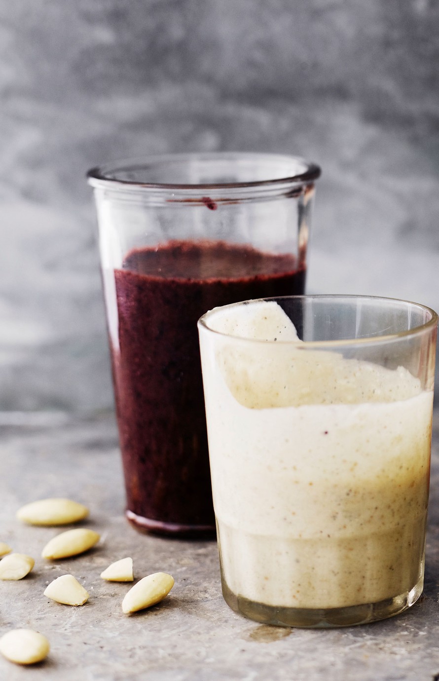- Mittaa ainekset tehosekoittimeen ja soseuta aivan samettiseksi. Koneen voi antaa käydä jopa parin minuutin ajan.