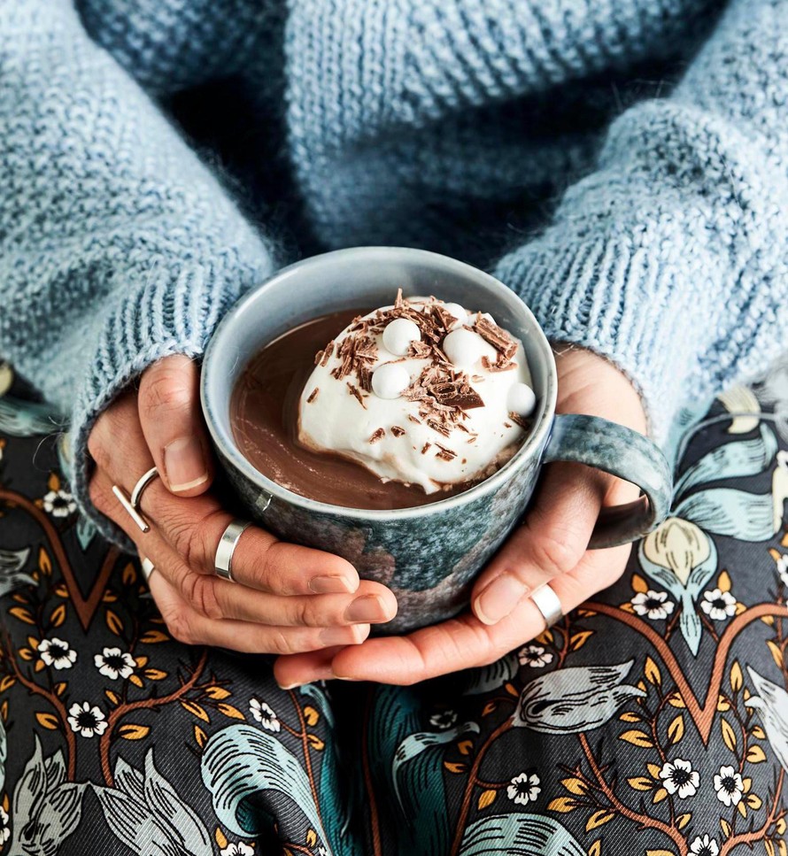 Nam! Höyryävän kardemummakaakaon kruunaavat vaniljavaahto ja suklaarouhe.