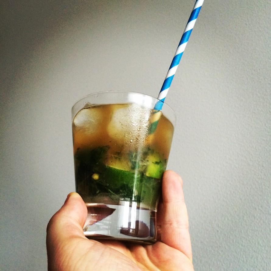 Metaxastakin saa näköjään sitten kuitenkin kyhättyä makoisan juoman. Apinoidaan vain vähän elementtejä Mojitosta ja vähän Caipiroskasta.
