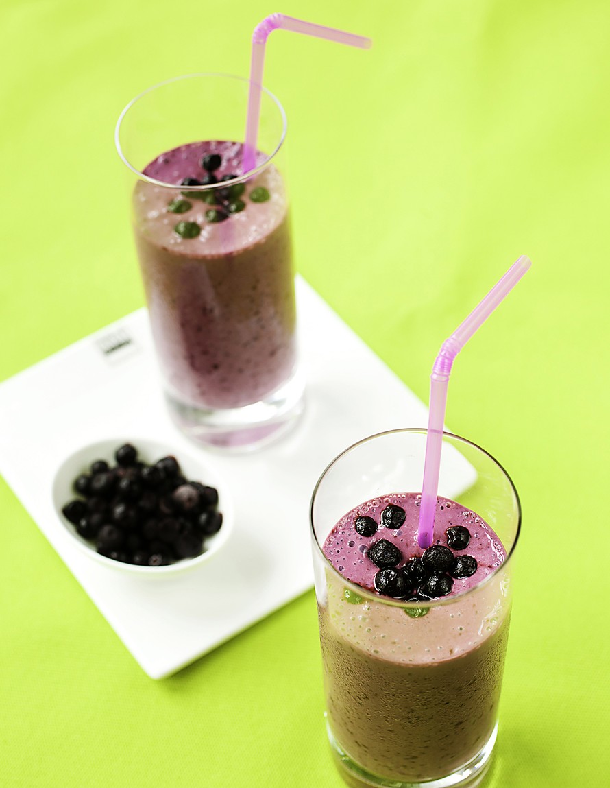 Mustikkasmoothiessa proteiinit ja hiilihydraatit lyövät kättä.