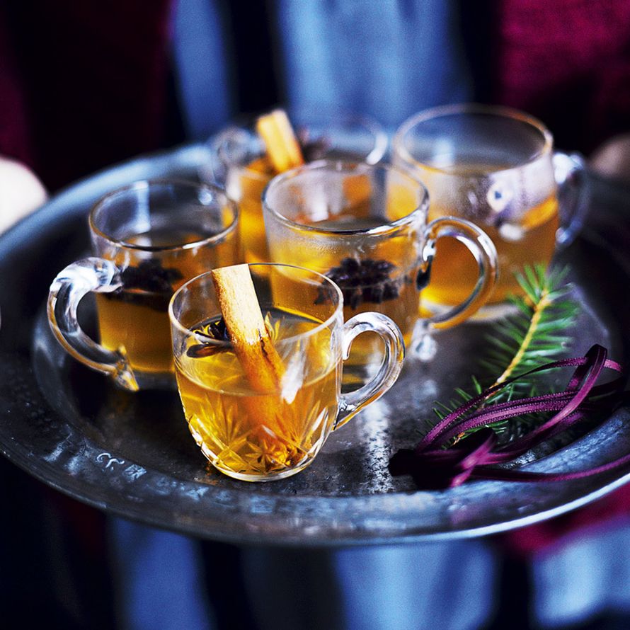 - Jaa kuuma juoma mukeihin tai kuumuuden kestäviin laseihin. Koristele juomat kanelitangoilla.