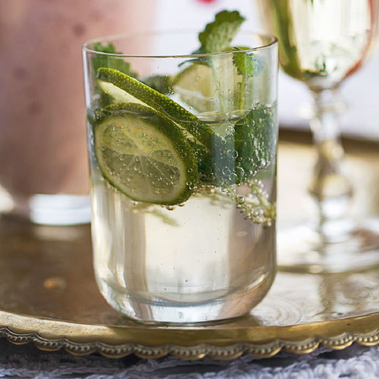 - Kaada päälle kivennäisvesi. Jaa juoma jäillä täytettyihin laseihin.