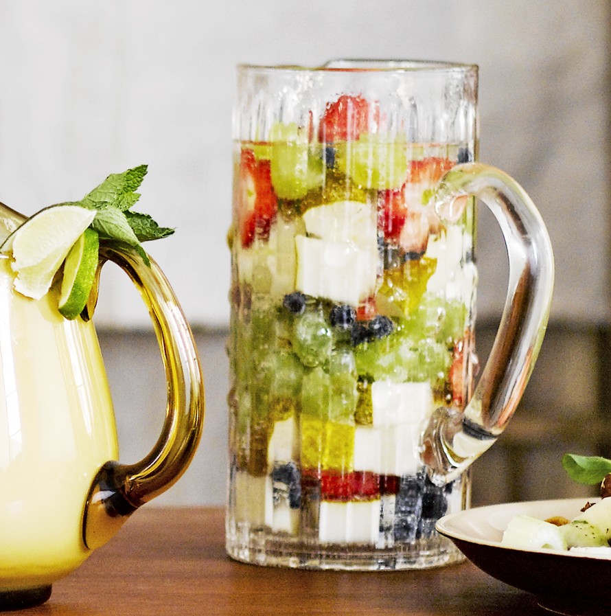 - Pane juomat viileään hyvissä ajoin ennen valmistusta. Huuhtele ja pilko marjat ja hedelmät. Juuri ennen tarjoilua pane kookkaan kannun pohjalle hedelmiä ja marjoja. Lisää viilennetyt juomat ja lopuksi jäät. Nosta tarjolle.