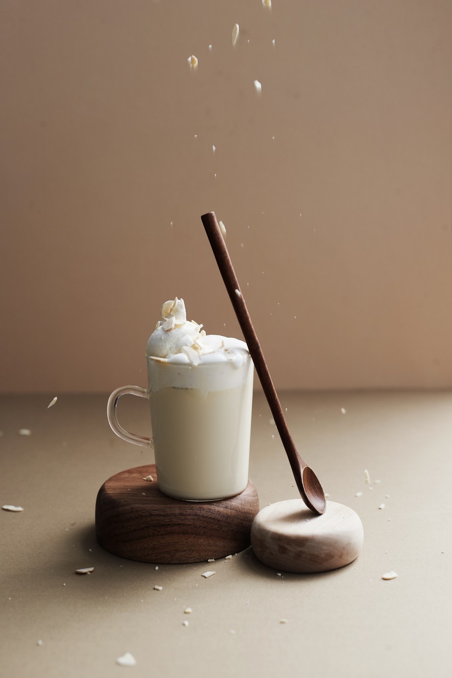 Siivilöi höyryävän kuuma maito valkosuklaan päälle kulhoon. Soseuta sauvasekoittimella. Lisää likööri.