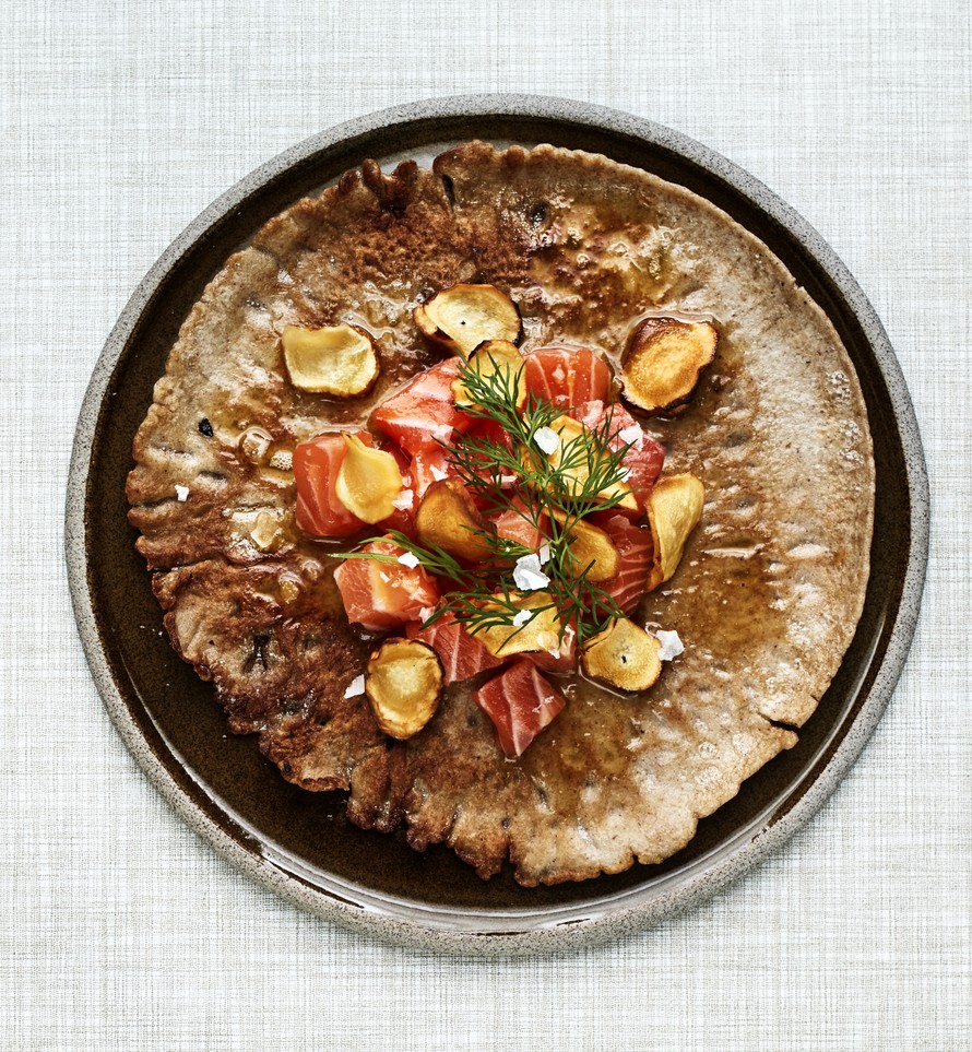 - Sulata täytteeseen tuleva voi ja hienonna tilli. Tarjoa ohukaiset lohen, piparjuurilastujen, voisulan ja hienonnetun tillin kanssa.