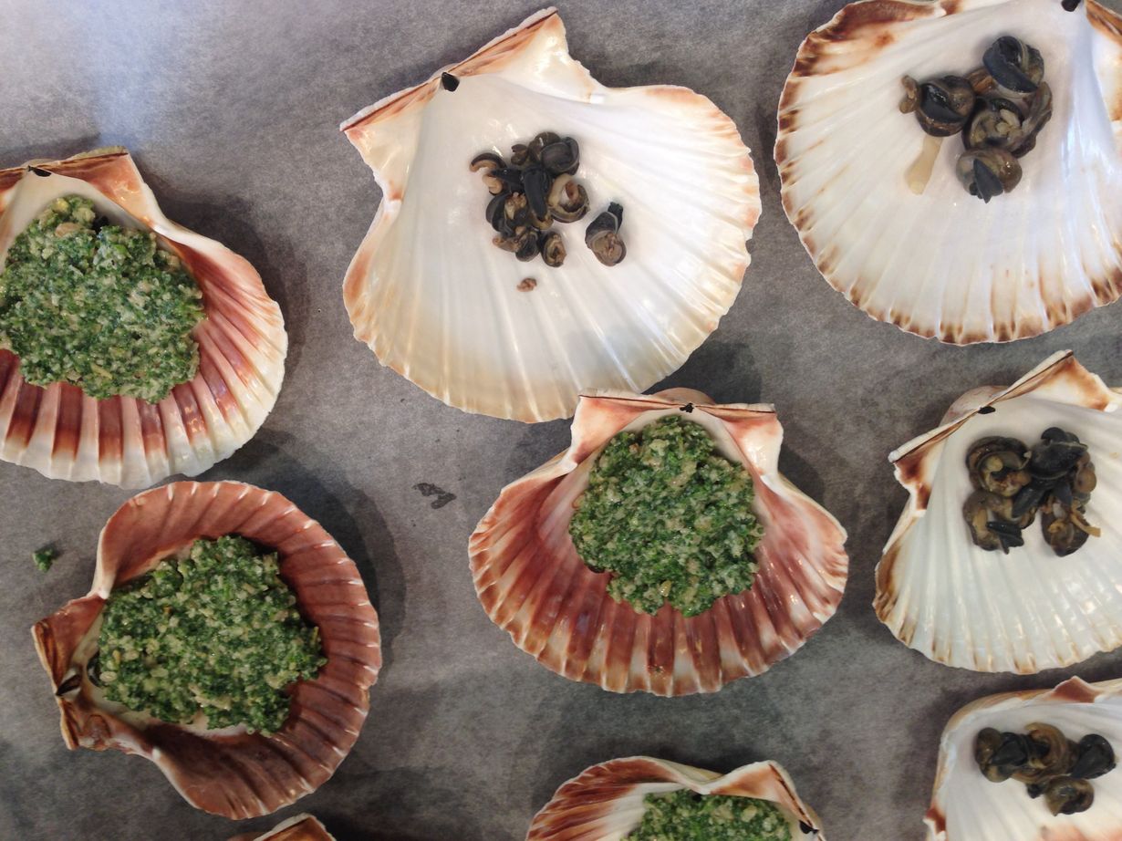 4. Ruuaksi käytetään vain elävät kotilot, jotka laitetaan vähitellen kiehuvaan veteen, jossa on väkiviinaetikkaa (4 l vettä, 1 dl väkiviinaetikkaa). Keittoaika on 8 minuuttia. Kuori vaahto hyvin pois ja huuhtele kotilot hyvin juoksevan, kylmän veden alla.