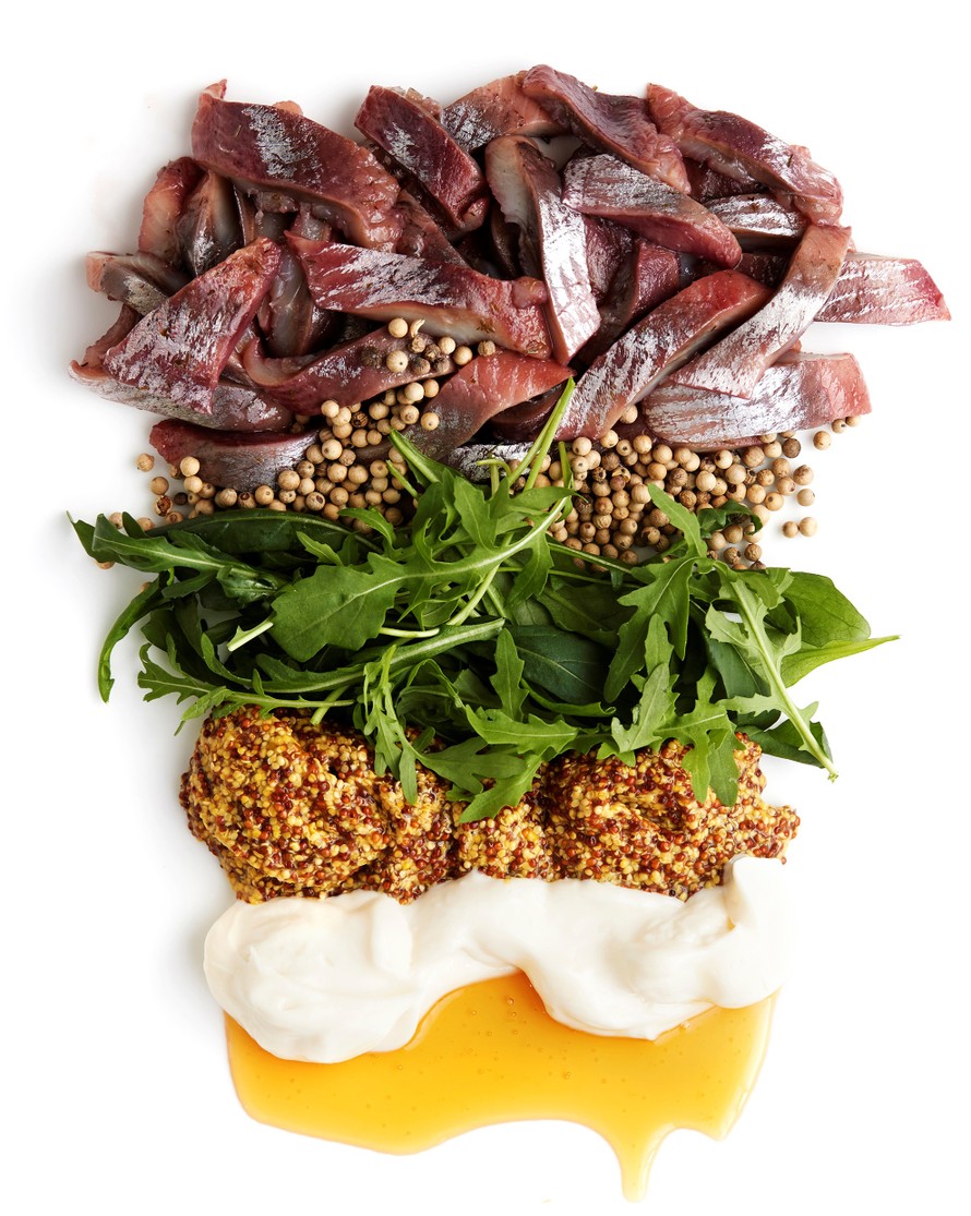 - Juuri ennen tarjoilua leikkaa villirucola silpuksi. Sekoita osa rucolasta sillin joukkoon ja ripottele osa koristeeksi.