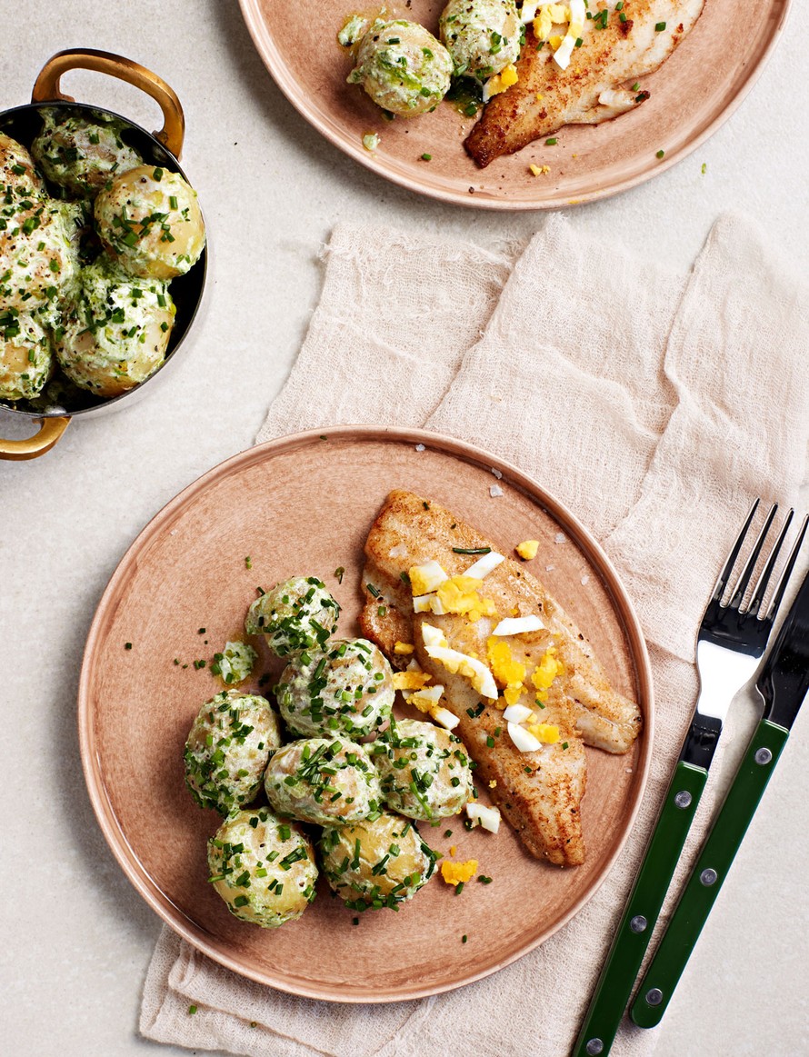 Paistetut ahvenet ja ruohosipuli-hölskyperunat