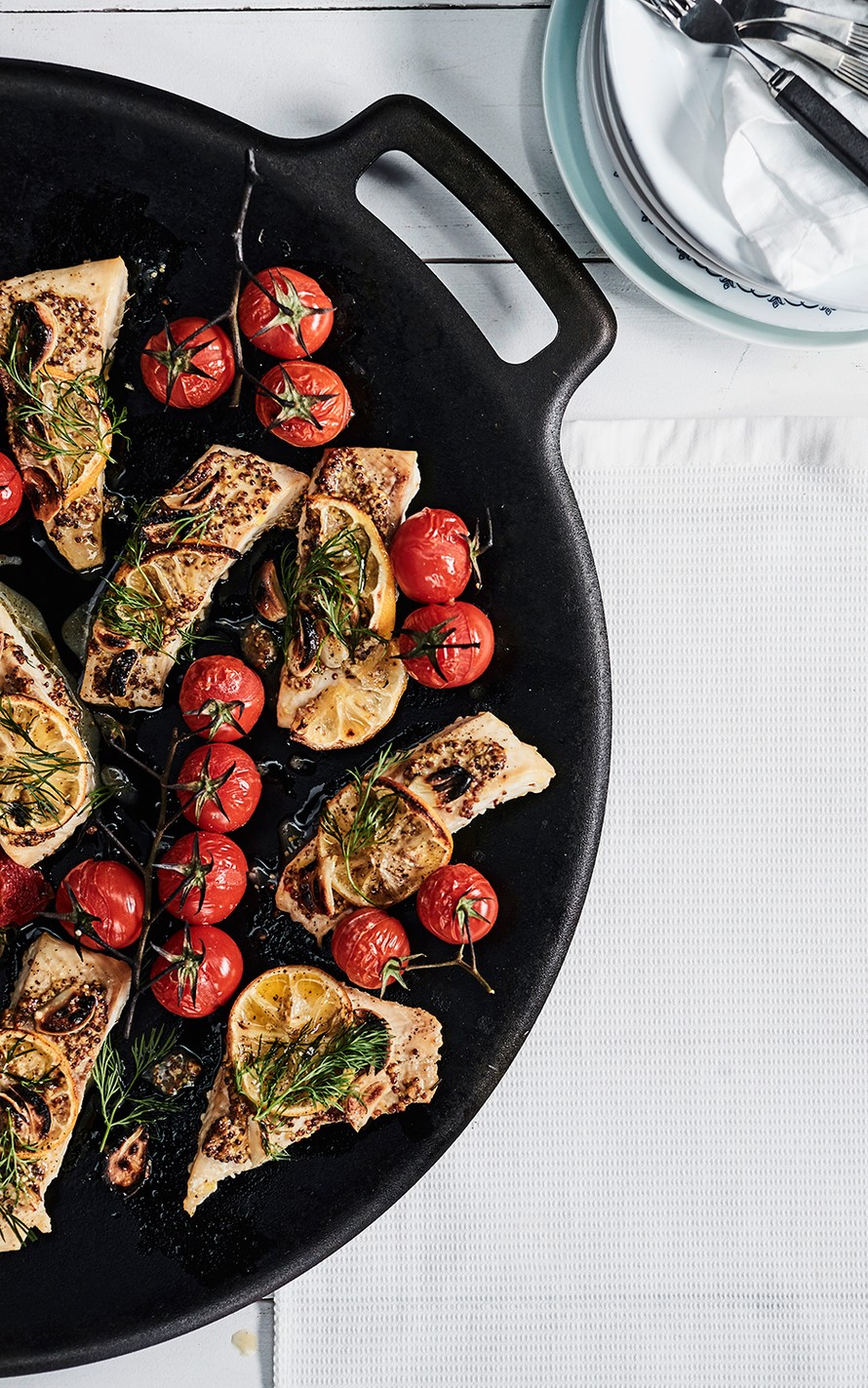 - Kuumenna paistinpannu tai muurikka. Paista haukiviipaleita 5 minuuttia voissa. Lisää tomaatit ja jatka kypsennystä noin 10 minuuttia eli kunnes kala on mehevän kypsää. Viimeistele sinappihauki tuoreella tillillä.