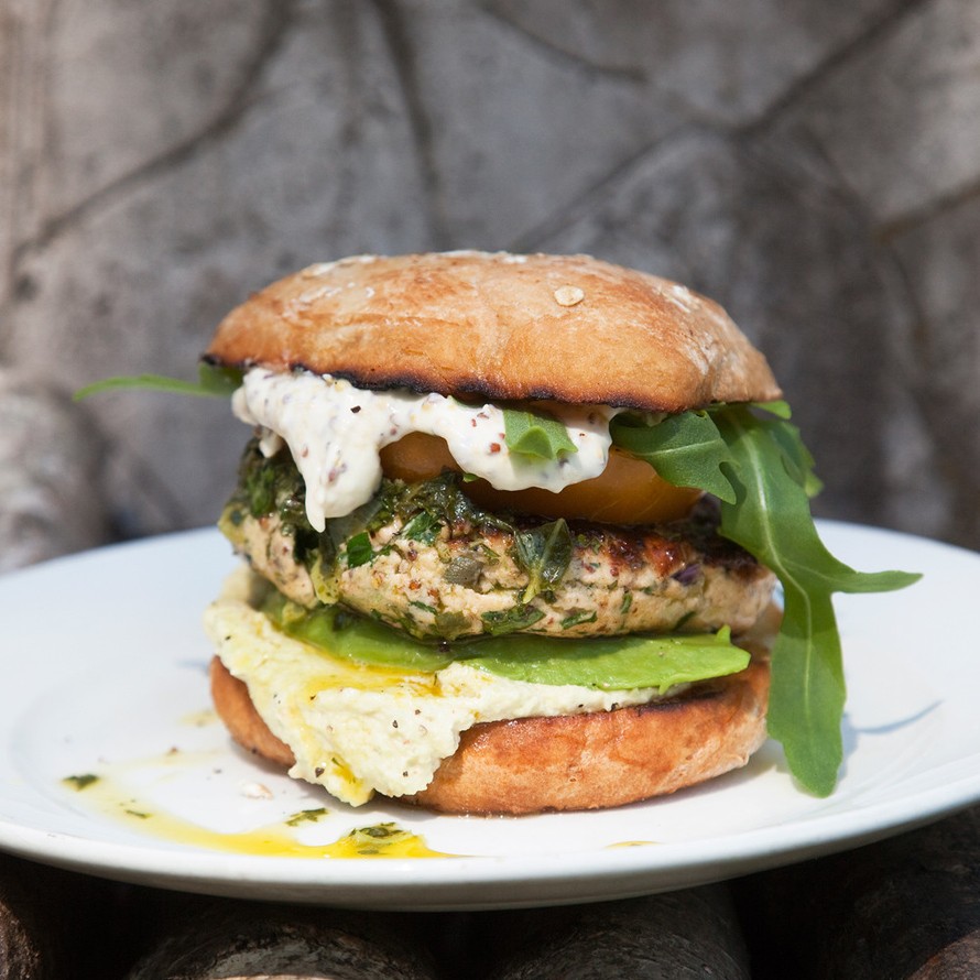 Parmesaanimajoneesilla viimeistelty lohiburgeri syntyy puolessa tunnissa.
