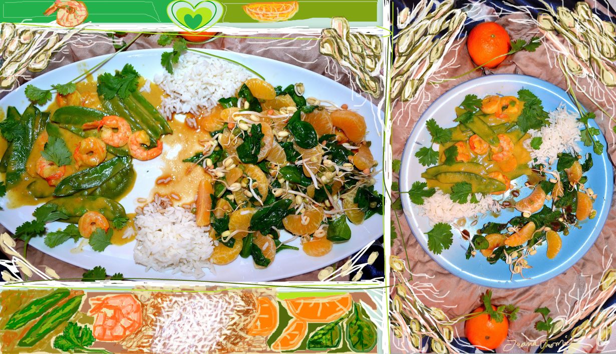 Mandariini-pinaattia ja katkarapu-currypataa