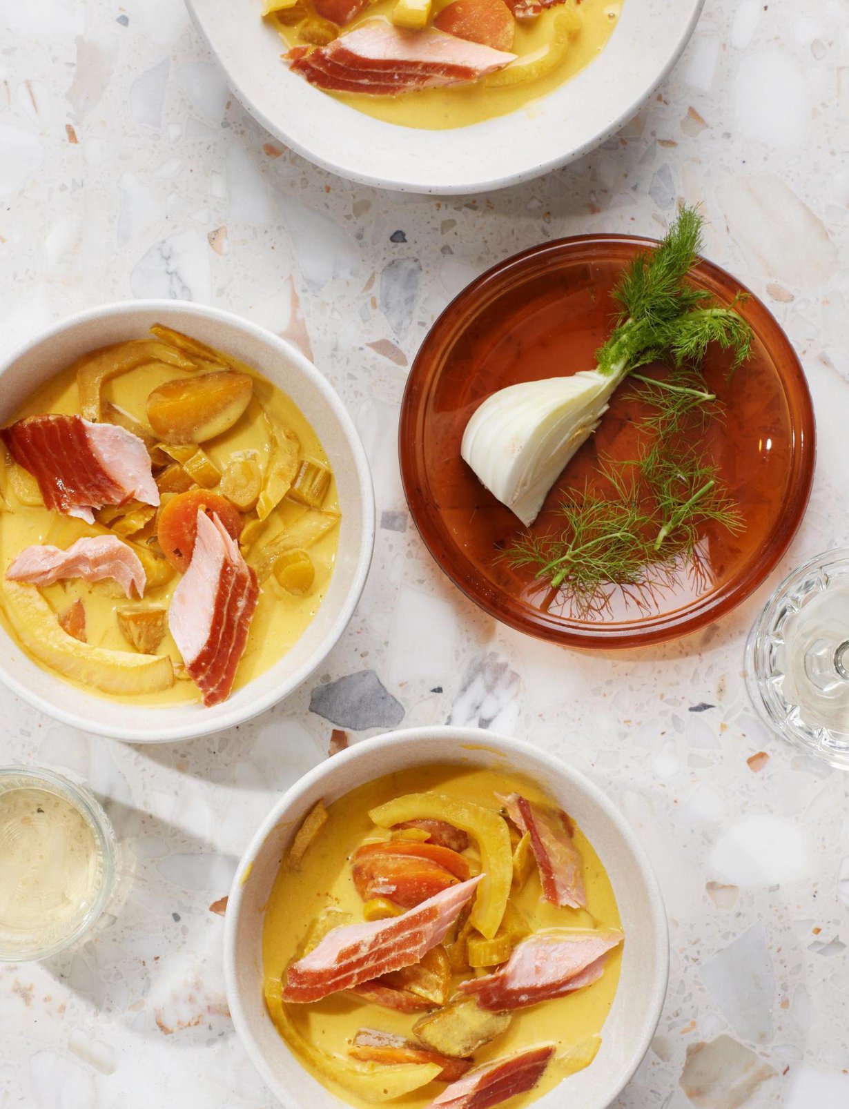 Fenkolin raikas maku sopii mainiosti savukalakeittoon. Sahrami ei ole välttämätön mauste, mutta se antaa ripauksen luksusta ja kultaisen sävyn.