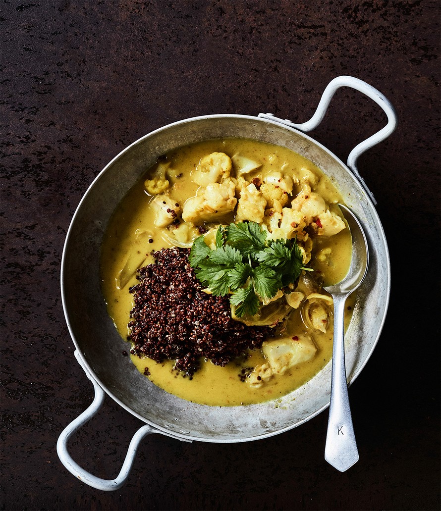 Curryn juju on mausteiden kypsentäminen ensin. Lisää kala ihan viimeisenä, jotta se pysyy mehevänä.