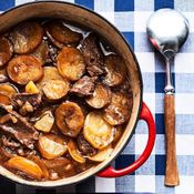 - Kuori ja suikaloi perunat. Kuori ja viipaloi sipulit.