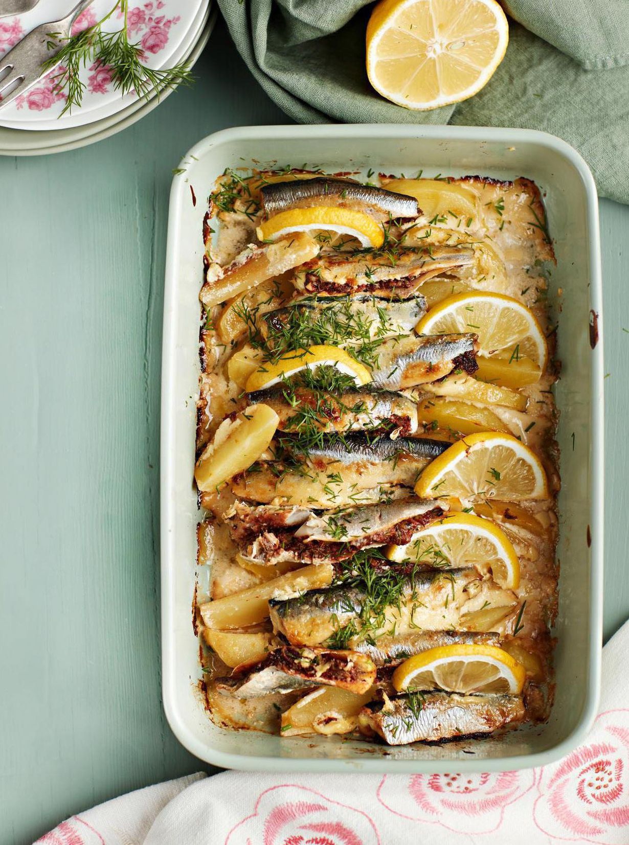 Kypsennä 180-asteisessa uunissa 30 minuuttia tai kunnes perunat kypsyvät.