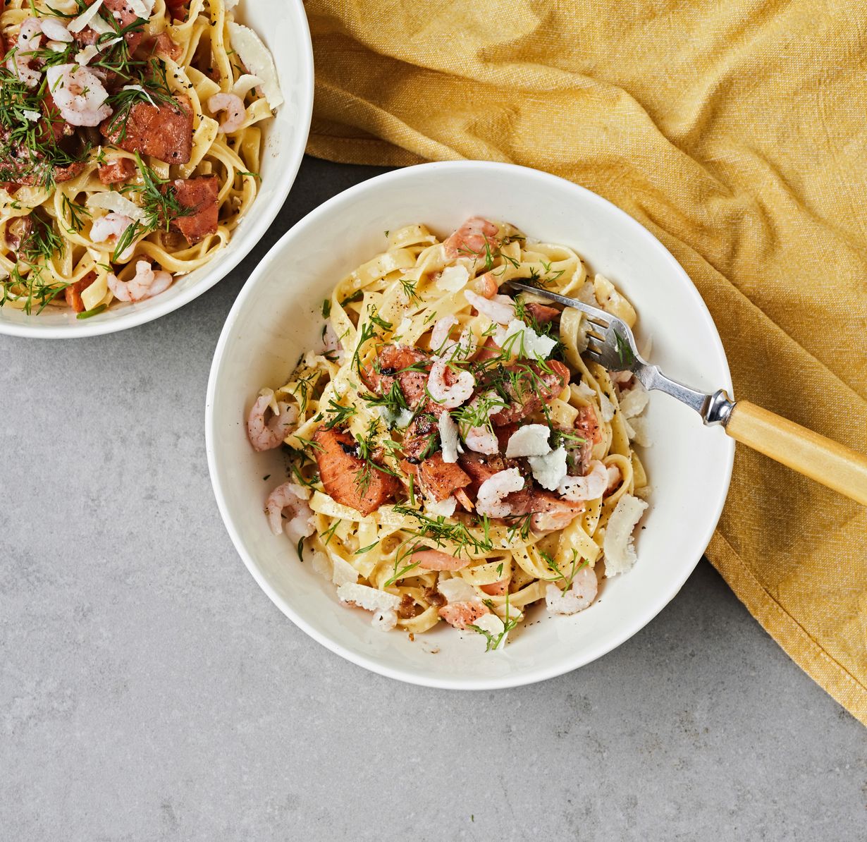 Tällä ruualla huippukokki Mika Roito hurmasi vaimonsa, ja vuosien jälkeenkin he syövät mehevää kylmäsavulohi-äyriäispastaa säännöllisesti.