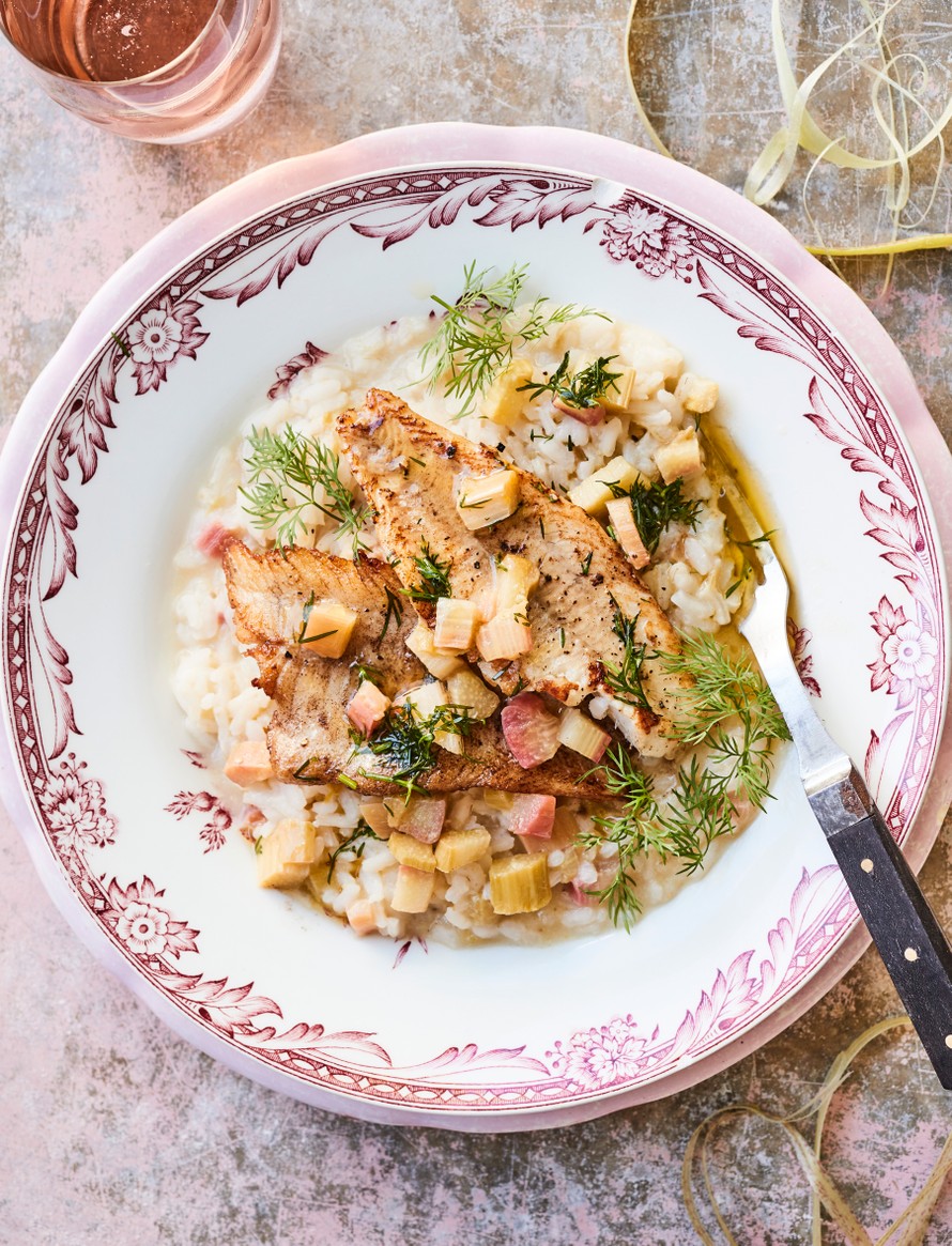 Raparperirisotto ja paistetut ahvenfileet