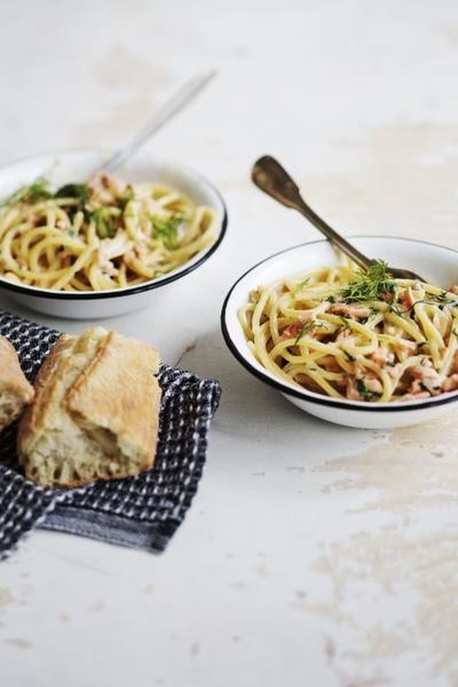 "Pidän yksinkertaisista pastoista: pelkkää oliiviöljyä, valkosipulia ja pippuria sekä raastettua parmesaania tai pecorinoa. Tällaista pastaa nuorempi lapseni ei edes laske ruokalajiksi, koska siinä ei ole proteiineja”, Teresa Välimäki kertoo perheensä pastahommista. Kiireinen kahden teinin äiti turvautuu pastaan ainakin kerran viikossa. Savulohipasta syntyy pastan kiehuessa ja onkin todellinen pikaruoka!