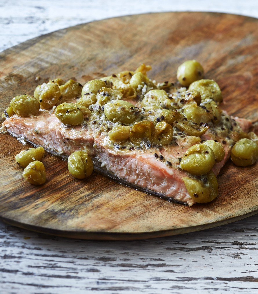 Marjaa ja lohta, kyllä! Hapokas ja satoisa karviainen sopii mahtavasti lohen kaveriksi.