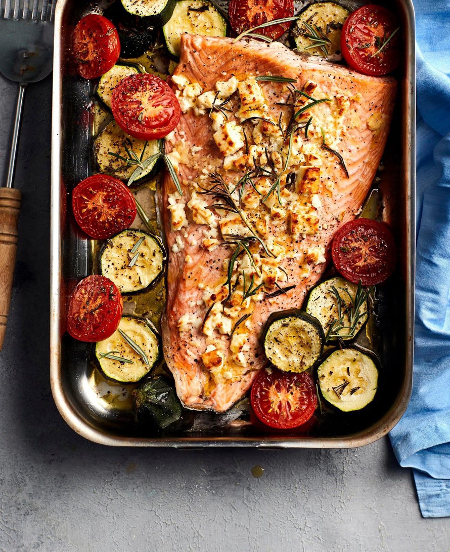 - Murenna feta. Lisää feta ja loput rosmariinit lohen päälle.