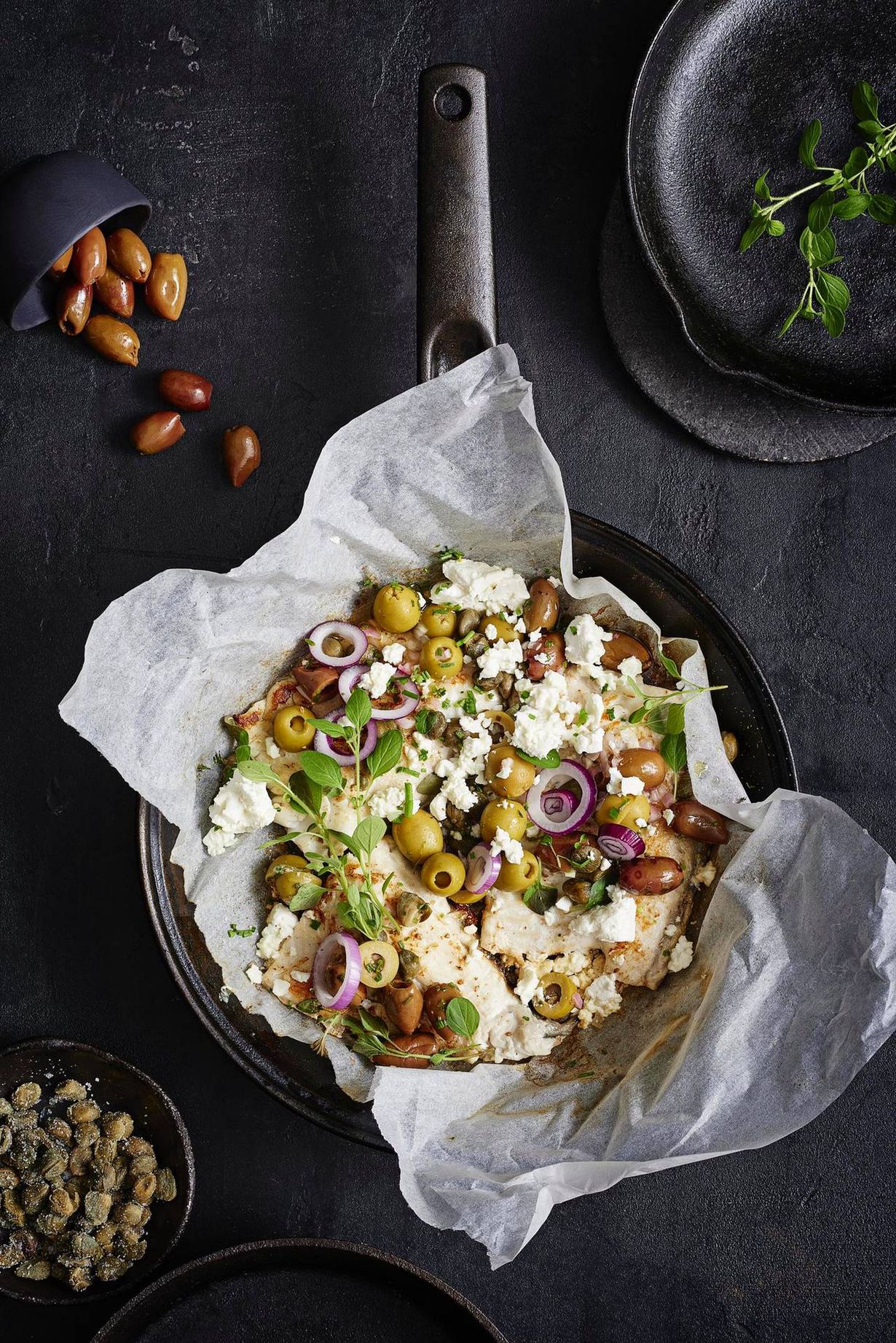 Jos haluat nipistää kaloreista mausta tinkimättä, sujauta pannulle rasvan sijaan leivinpaperi. Sen päällä kala kypsyy kauniin väriseksi, ilman käryjä. Kreikkalaiseen tapaan valmistetut siikafileet lastataan fetalla, oliiveilla ja oreganolla ja viimeistellään tilkalla oliiviöljyä.