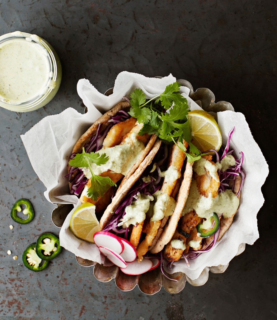 Kuka kaipaa tacoja, kun kaiken voi kääriä rieskaan? Tee kuhalle kuohkea leivitys ja hurmaa ruokailijat upealla jalapeno-kurkkukastikkeella. Tähän tulee himo!