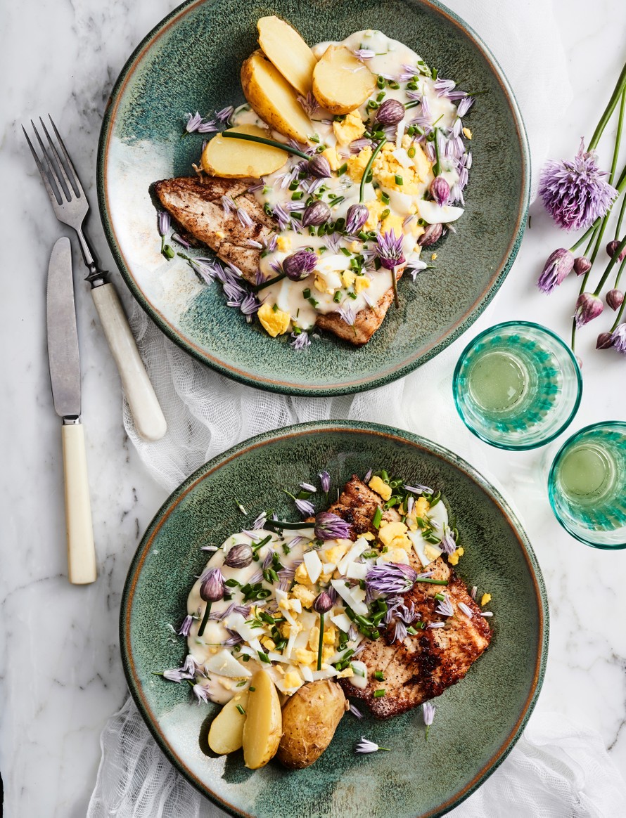 Ruohosipuli-munakastike ja paistettu siika