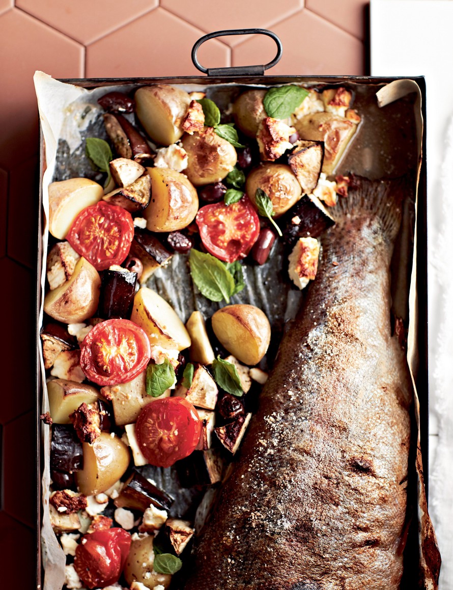 Maukkaiden vihannesten kanssa kypsyvä mehevän sitruunainen lohi on myös mainio juhlaruoka.